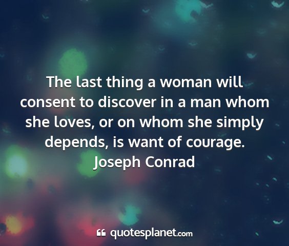 The last thing a woman will consent to discover in a man whom she loves, or on whom she simply depends, is want of courage.Joseph Conrad