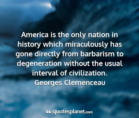 America is the only nation in history which miraculously has gone directly from barbarism to degeneration without the usual interval of civilization.Georges Clemenceau