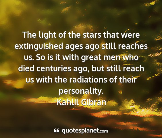 The light of the stars that were extinguished ages ago still reaches us. So is it with great men who died centuries ago, but still reach us with the radiations of their personality.Kahlil Gibran