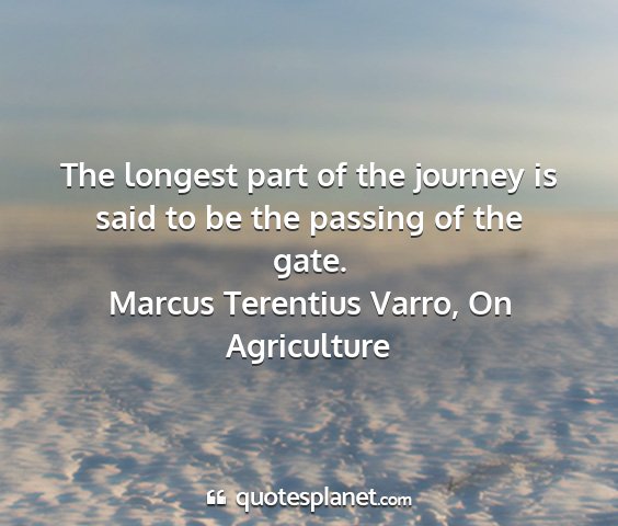 The longest part of the journey is said to be the passing of the gate.Marcus Terentius Varro, On Agriculture