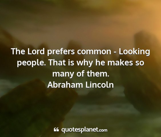 The Lord prefers common - Looking people. That is why he makes so many of them.