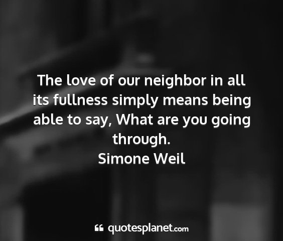 The love of our neighbor in all its fullness simply means being able to say, What are you going through.Simone Weil