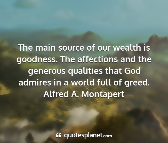 The main source of our wealth is goodness. The affections and the generous qualities that God admires in a world full of greed.Alfred A. Montapert