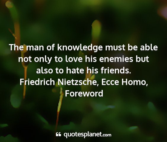 The man of knowledge must be able not only to love his enemies but also to hate his friends.Friedrich Nietzsche, Ecce Homo, Foreword