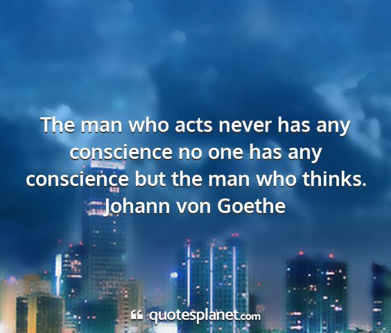 The man who acts never has any conscience no one has any conscience but the man who thinks.Johann von Goethe