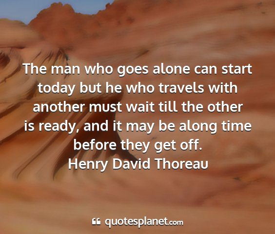 The man who goes alone can start today but he who travels with another must wait till the other is ready, and it may be along time before they get off.Henry David Thoreau