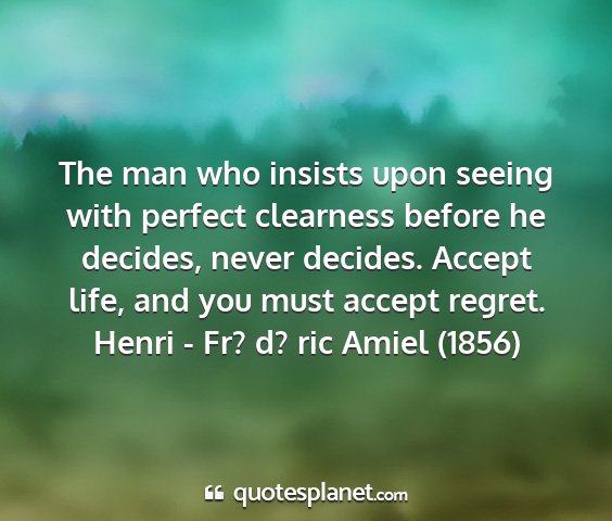 The man who insists upon seeing with perfect clearness before he decides, never decides. Accept life, and you must accept regret.Henri - Fr? d? ric Amiel (1856)