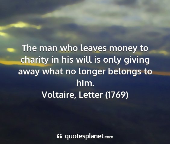 The man who leaves money to charity in his will is only giving away what no longer belongs to him.Voltaire, Letter (1769)
