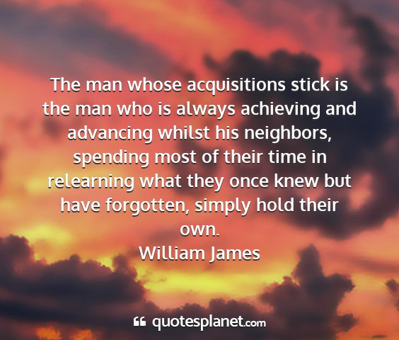 The man whose acquisitions stick is the man who is always achieving and advancing whilst his neighbors, spending most of their time in relearning what they once knew but have forgotten, simply hold their own.William James