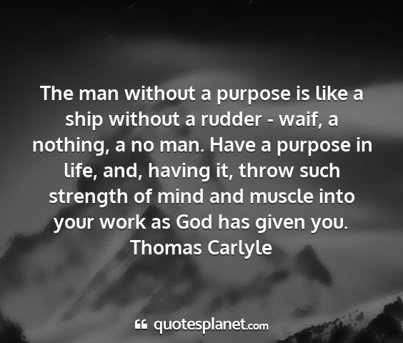 The man without a purpose is like a ship without a rudder - waif, a nothing, a no man. Have a purpose in life, and, having it, throw such strength of mind and muscle into your work as God has given you.Thomas Carlyle