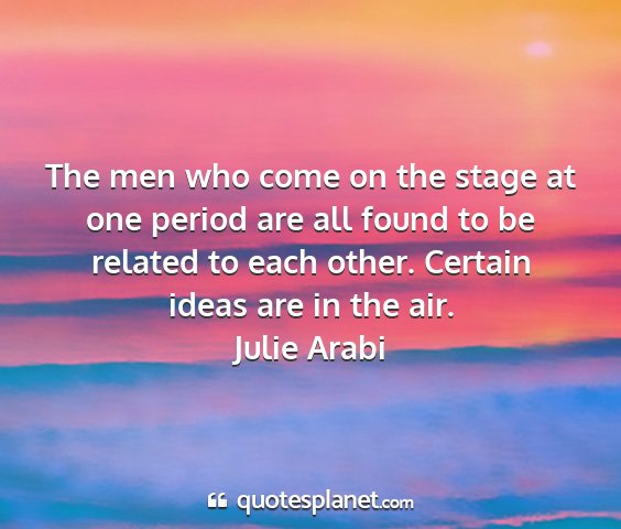 The men who come on the stage at one period are all found to be related to each other. Certain ideas are in the air.Julie Arabi