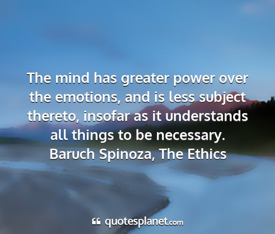 The mind has greater power over the emotions, and is less subject thereto, insofar as it understands all things to be necessary.Baruch Spinoza, The Ethics