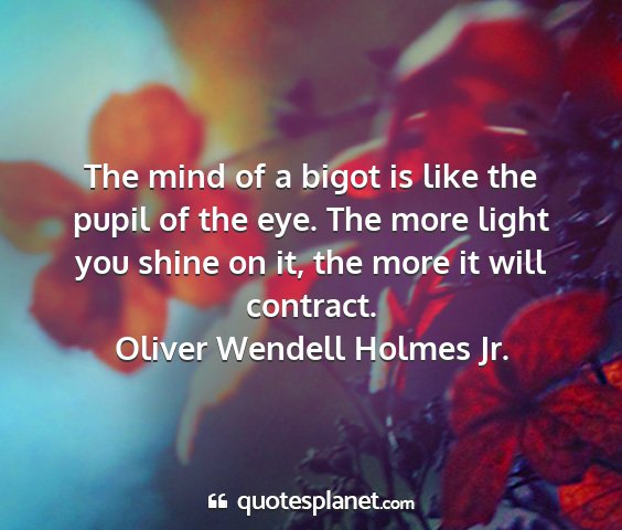 The mind of a bigot is like the pupil of the eye. The more light you shine on it, the more it will contract.Oliver Wendell Holmes Jr.