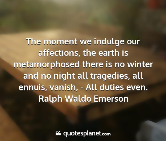 The moment we indulge our affections, the earth is metamorphosed there is no winter and no night all tragedies, all ennuis, vanish, - All duties even.Ralph Waldo Emerson