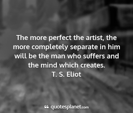 The more perfect the artist, the more completely separate in him will be the man who suffers and the mind which creates.T. S. Eliot