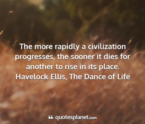 The more rapidly a civilization progresses, the sooner it dies for another to rise in its place.Havelock Ellis, The Dance of Life