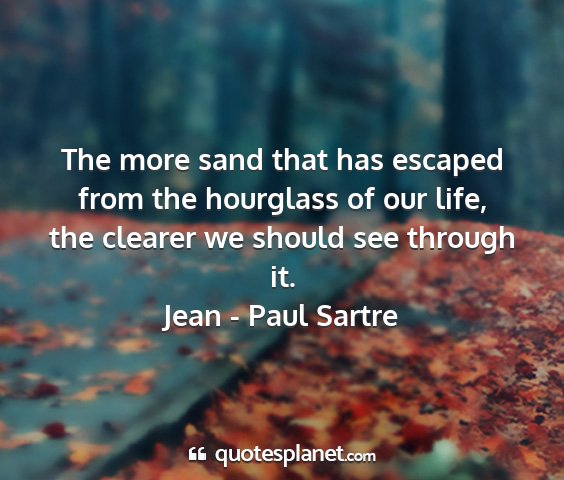 The more sand that has escaped from the hourglass of our life, the clearer we should see through it.Jean - Paul Sartre