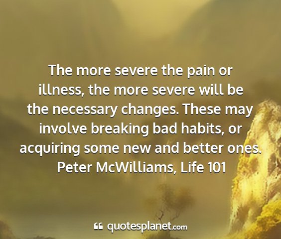 The more severe the pain or illness, the more severe will be the necessary changes. These may involve breaking bad habits, or acquiring some new and better ones.Peter McWilliams, Life 101