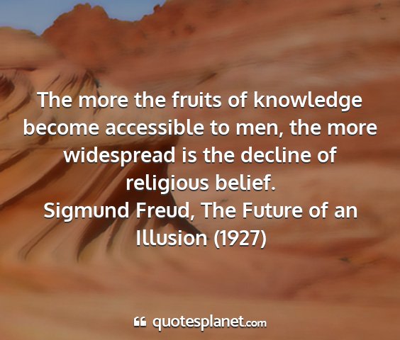 The more the fruits of knowledge become accessible to men, the more widespread is the decline of religious belief.Sigmund Freud, The Future of an Illusion (1927)