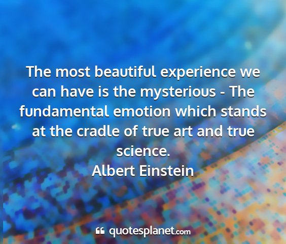 The most beautiful experience we can have is the mysterious - The fundamental emotion which stands at the cradle of true art and true science.Albert Einstein