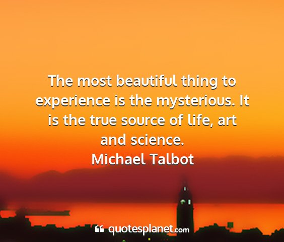 The most beautiful thing to experience is the mysterious. It is the true source of life, art and science.Michael Talbot