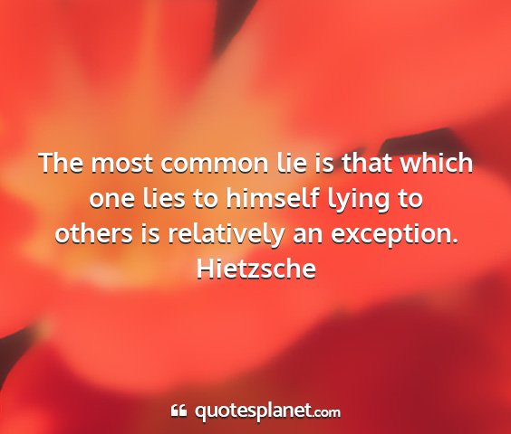 The most common lie is that which one lies to himself lying to others is relatively an exception.Hietzsche