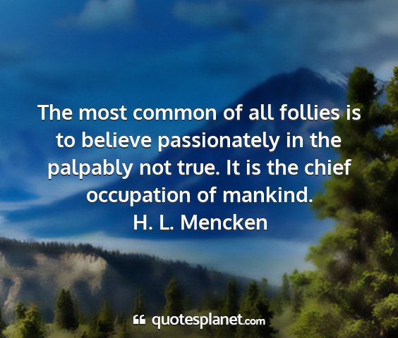 The most common of all follies is to believe passionately in the palpably not true. It is the chief occupation of mankind.H. L. Mencken