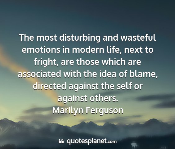 The most disturbing and wasteful emotions in modern life, next to fright, are those which are associated with the idea of blame, directed against the self or against others.Marilyn Ferguson
