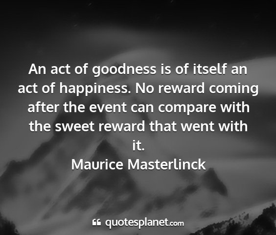 An act of goodness is of itself an act of happiness. No reward coming after the event can compare with the sweet reward that went with it.Maurice Masterlinck