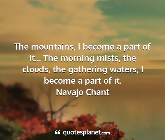 The mountains, I become a part of it... The morning mists, the clouds, the gathering waters, I become a part of it.Navajo Chant