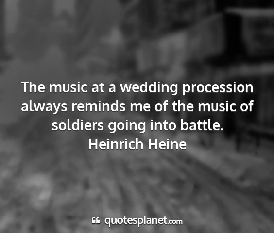 The music at a wedding procession always reminds me of the music of soldiers going into battle.Heinrich Heine
