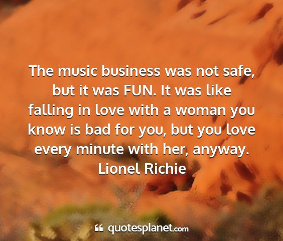 The music business was not safe, but it was FUN. It was like falling in love with a woman you know is bad for you, but you love every minute with her, anyway.Lionel Richie