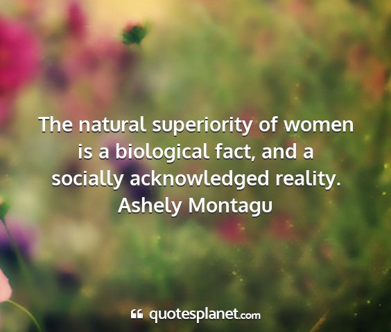 The natural superiority of women is a biological fact, and a socially acknowledged reality.Ashely Montagu