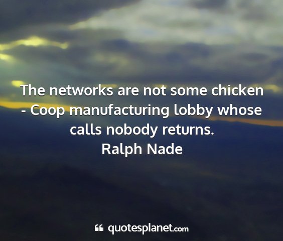 The networks are not some chicken - Coop manufacturing lobby whose calls nobody returns.