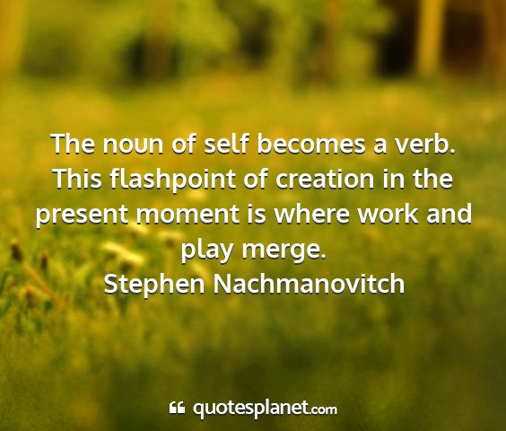 The noun of self becomes a verb. This flashpoint of creation in the present moment is where work and play merge.Stephen Nachmanovitch