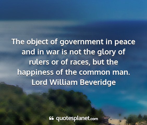 The object of government in peace and in war is not the glory of rulers or of races, but the happiness of the common man.Lord William Beveridge