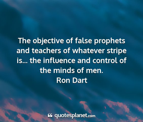 The objective of false prophets and teachers of whatever stripe is... the influence and control of the minds of men.Ron Dart