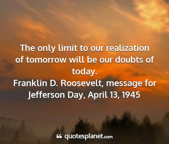 The only limit to our realization of tomorrow will be our doubts of today.Franklin D. Roosevelt, message for Jefferson Day, April 13, 1945