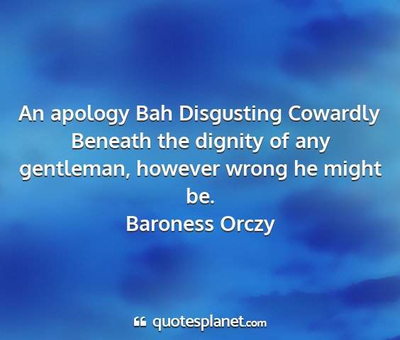 An apology Bah Disgusting Cowardly Beneath the dignity of any gentleman, however wrong he might be.Baroness Orczy