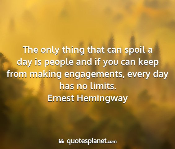 The only thing that can spoil a day is people and if you can keep from making engagements, every day has no limits.Ernest Hemingway