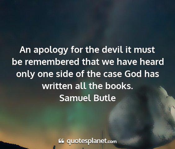 An apology for the devil it must be remembered that we have heard only one side of the case God has written all the books.Samuel Butle