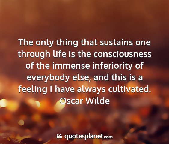 The only thing that sustains one through life is the consciousness of the immense inferiority of everybody else, and this is a feeling I have always cultivated.Oscar Wilde