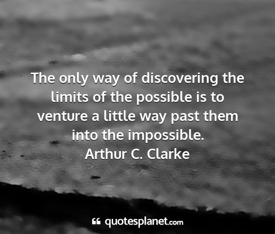 The only way of discovering the limits of the possible is to venture a little way past them into the impossible.Arthur C. Clarke