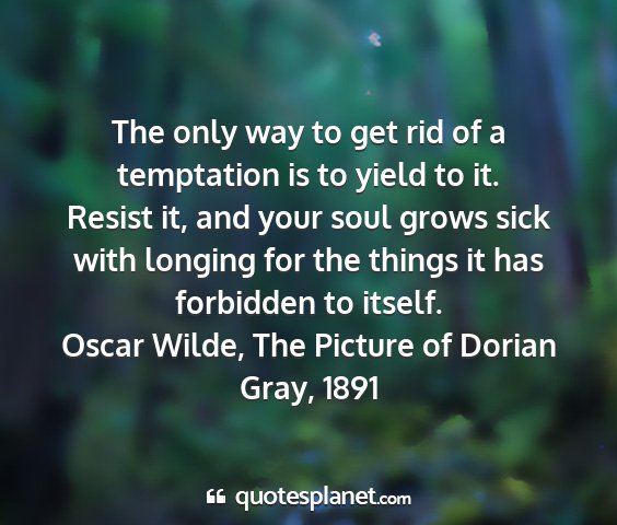 The only way to get rid of a temptation is to yield to it. Resist it, and your soul grows sick with longing for the things it has forbidden to itself.Oscar Wilde, The Picture of Dorian Gray, 1891