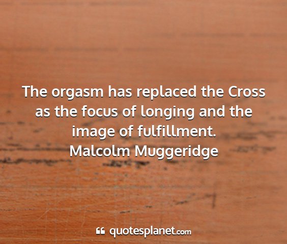 The orgasm has replaced the Cross as the focus of longing and the image of fulfillment.Malcolm Muggeridge