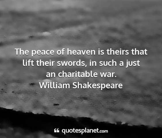 The peace of heaven is theirs that lift their swords, in such a just an charitable war.William Shakespeare