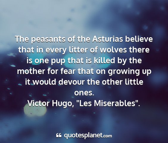 The peasants of the Asturias believe that in every litter of wolves there is one pup that is killed by the mother for fear that on growing up it would devour the other little ones.Victor Hugo, "Les Miserables".