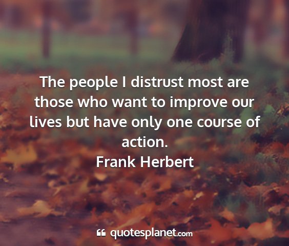 The people I distrust most are those who want to improve our lives but have only one course of action.Frank Herbert