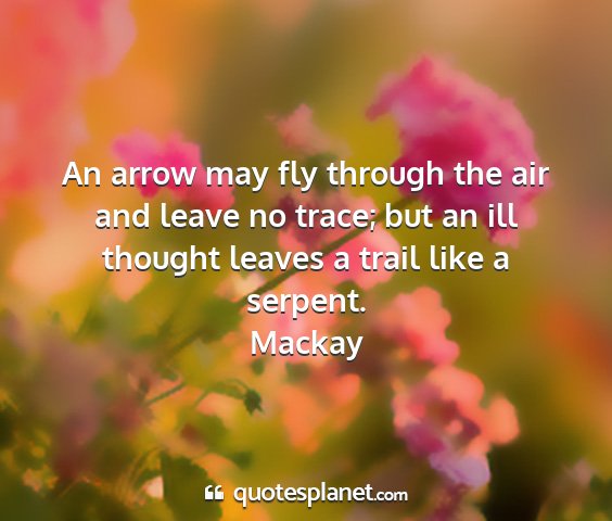 An arrow may fly through the air and leave no trace; but an ill thought leaves a trail like a serpent.Mackay