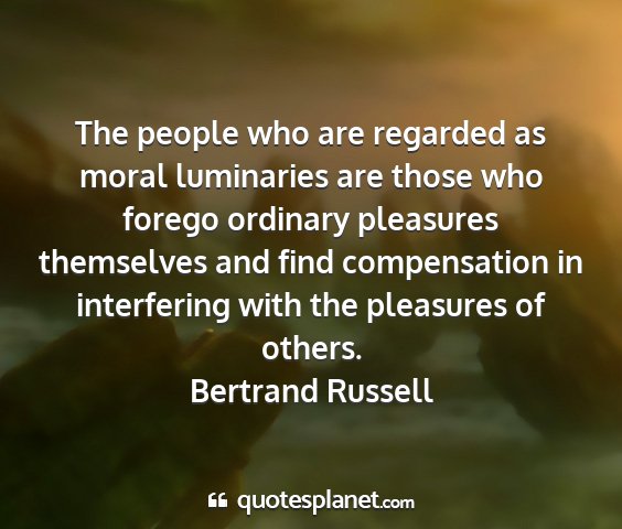 The people who are regarded as moral luminaries are those who forego ordinary pleasures themselves and find compensation in interfering with the pleasures of others.Bertrand Russell